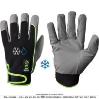 Darba Cimdi Silti Sintētiskās Ādas VNR 3342 12 Winter Work Gloves Safety Workwear Black Green Darba Apģērbs Aksesuārs