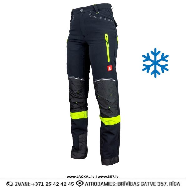 / Darba Bikses Siltinātas Elestīgas Softshell 750 URGENT Flexi Spandex Elastane Black Yellow Drošības Darba Apģērbi Specapģērbi