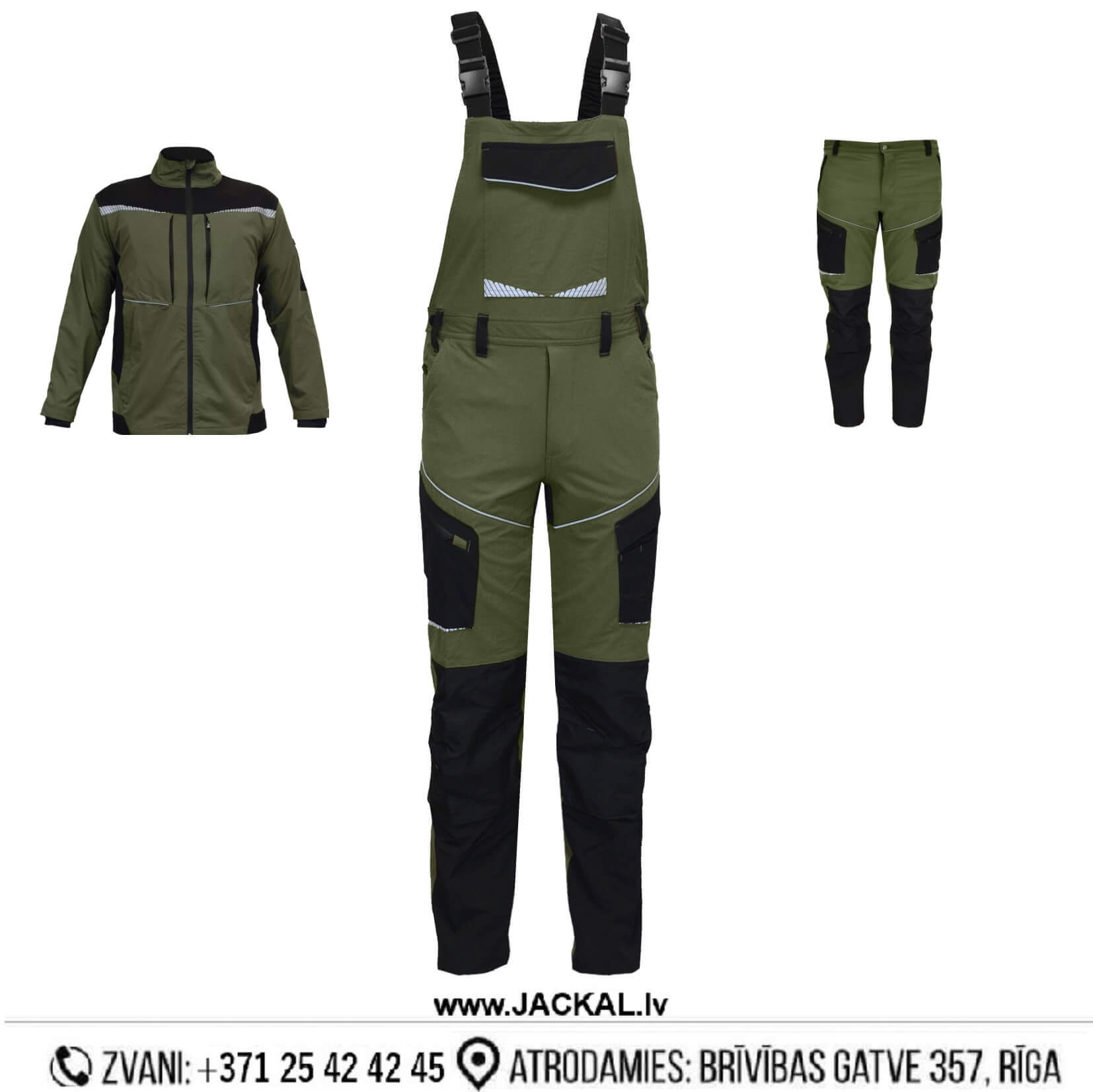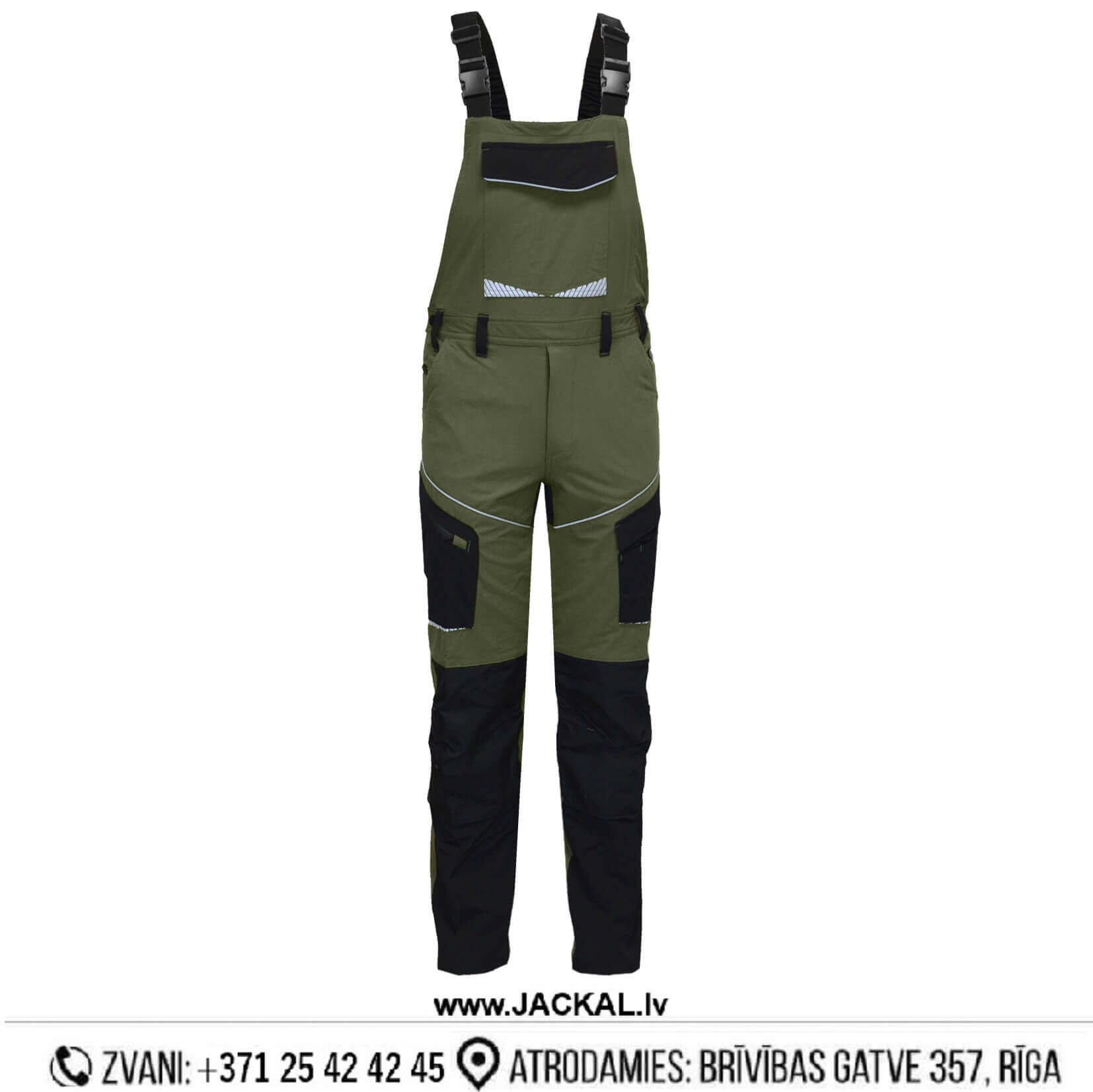 Īpaši elastīgs haki krāsas kombinezons ar modernu dizainu.