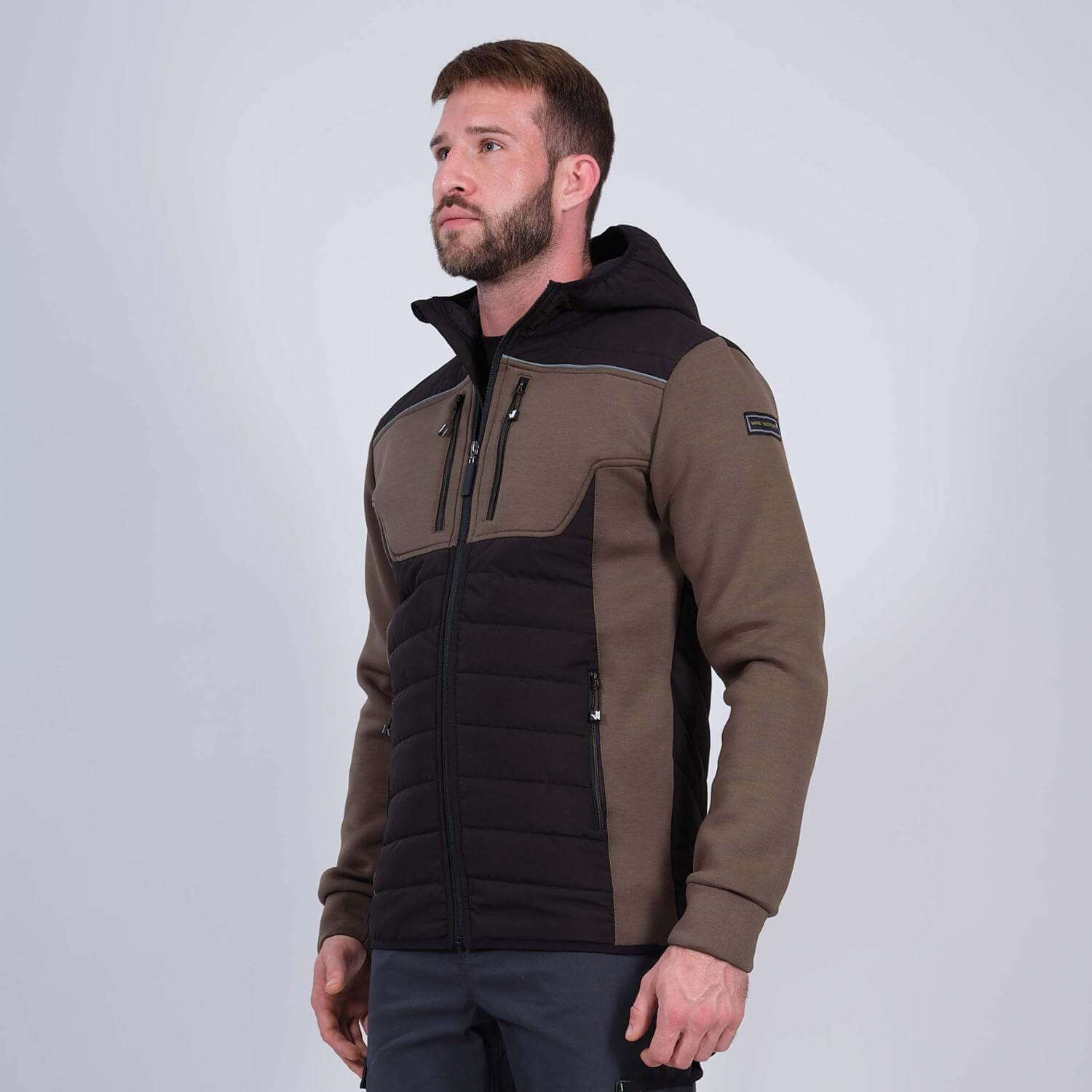 Darba Jaka ar Kapuci HIRO Nine Worths Stretch 3D Spacer Breathable Multipocket Khaki Black FRANCE Drošības Darba Apģērbi Specapģērbi