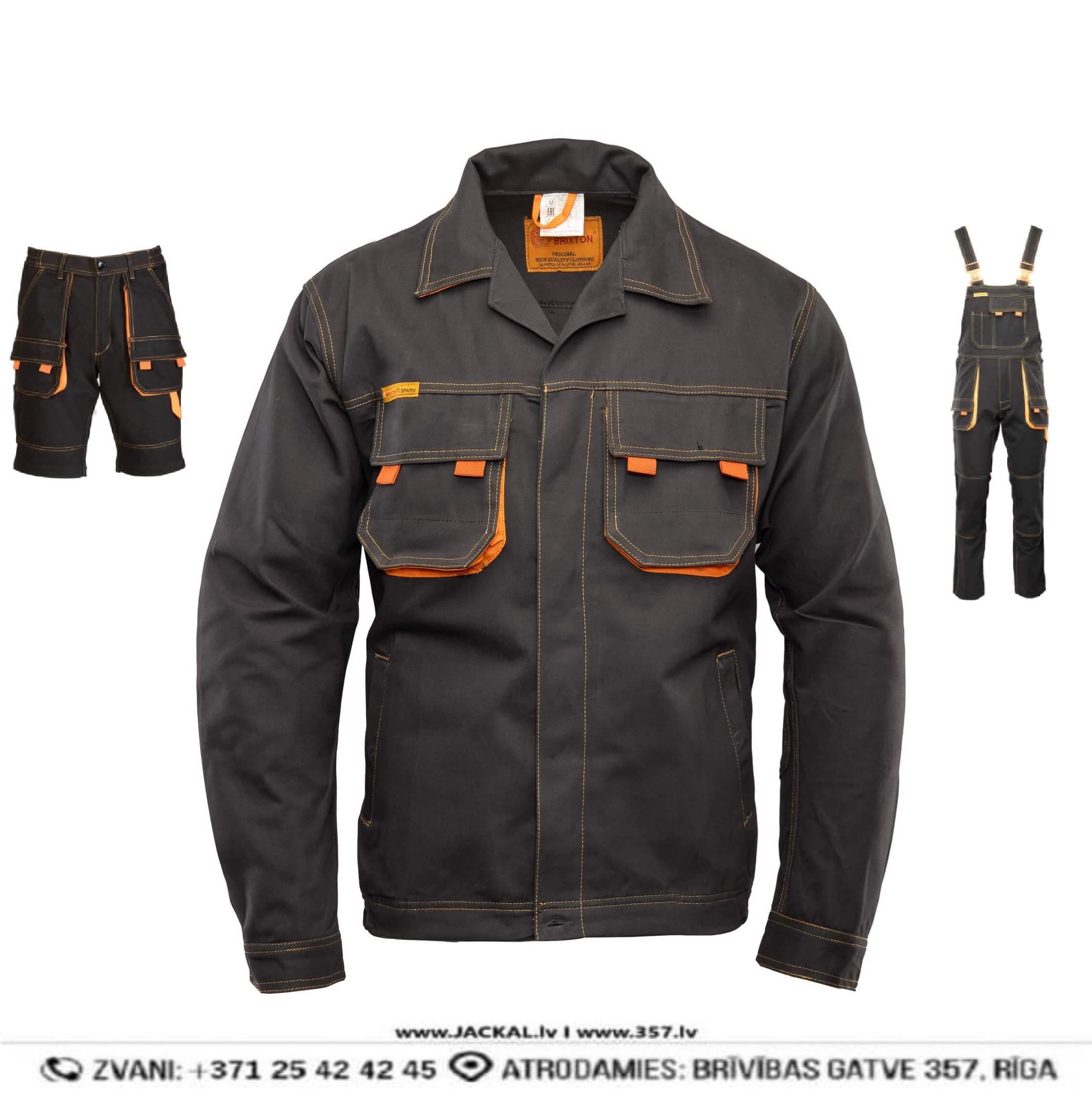 Darba Jaka SPARK Brixton Flexi Velcro Multipocket 100 Cotton Dark Grey Orange Drošības Darba Apģērbi