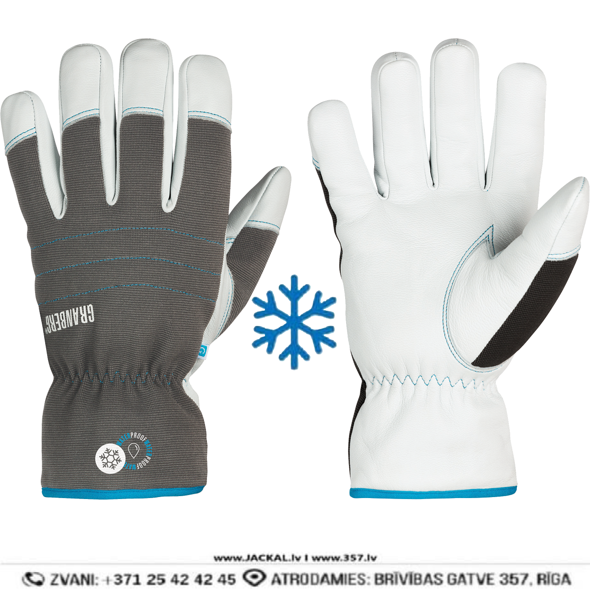 1051 GRANBERG Ādas Ziemas Darba Cimdi ar Membrānu Fleece Thinsulate Windproof Washable White Grey Drošības Darba Apģērbi Aksesuāri